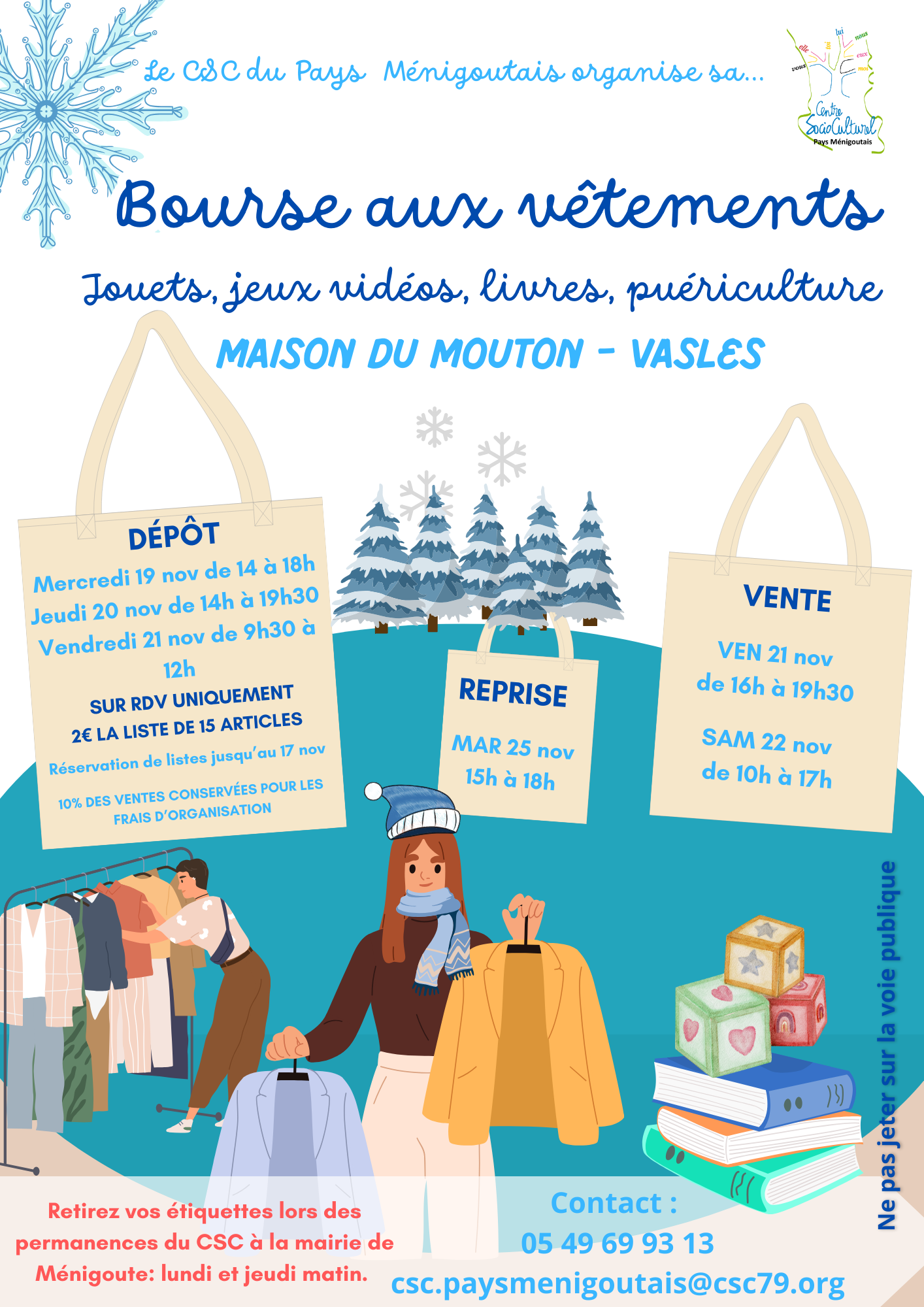 L’hiver arrive… et avec lui, notre traditionnelle bourse d’hiver ! Venez faire de bonnes affaires les 21 et 22 novembre à la salle de l’Alpagerie de Vasles. Vous y trouverez :