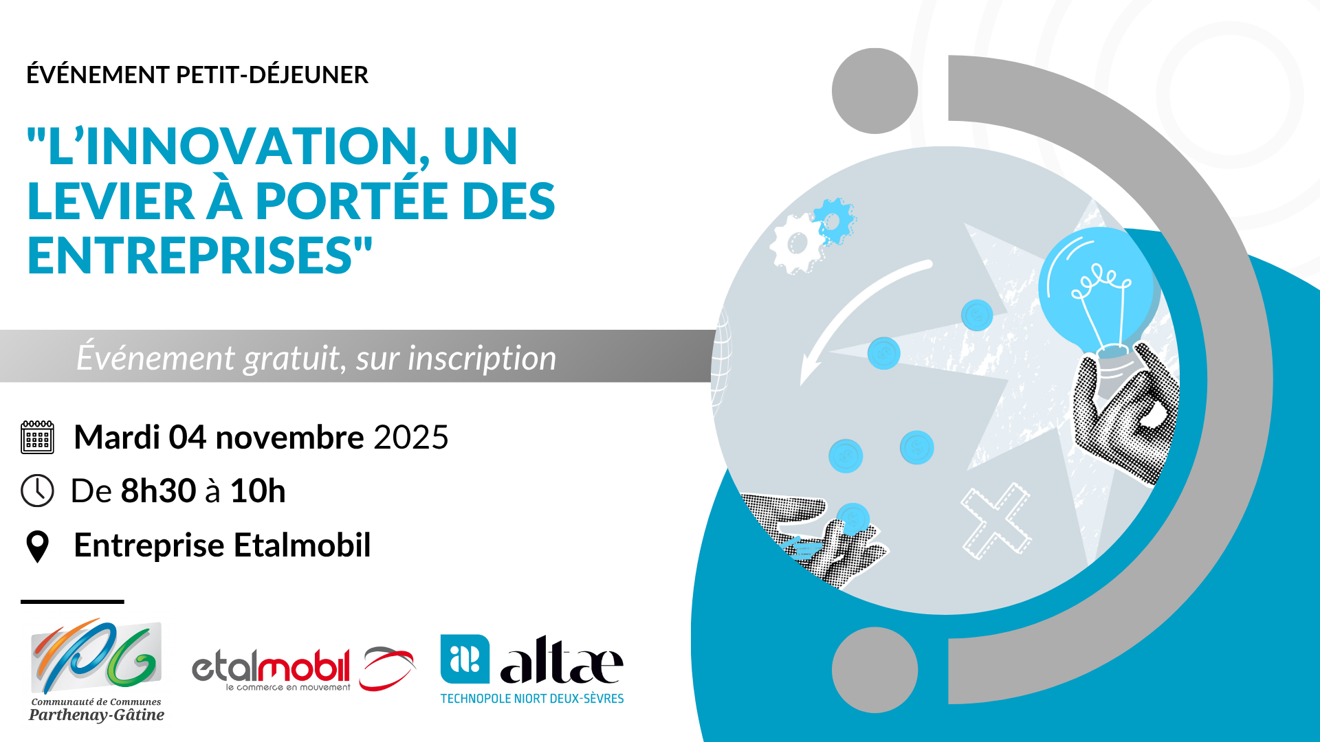 Le service économique de la Communauté de communes Parthenay-Gâtine et Altæ Technopole Niort Deux-Sèvres vous invitent à un temps d’échange simple, concret et accessible à toutes les entreprises.